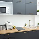 Con TV y TV de pantalla plana con canales vía satélite, la propiedad cuenta con comodidades como una plancha y tabla de planchar, climatizador e instalaciones de seguridad como una caja fuerte personal y detectores de humo. El apartamento ofrece mobiliario cómodo, incluyendo sofá y un escritorio. Los huéspedes tienen a su disposición camas con almohadas de pluma. El cuarto de baño dispone de ducha a ras de suelo, un inodoro separado de la ducha y un lavabo, secadores de pelo y toallas.